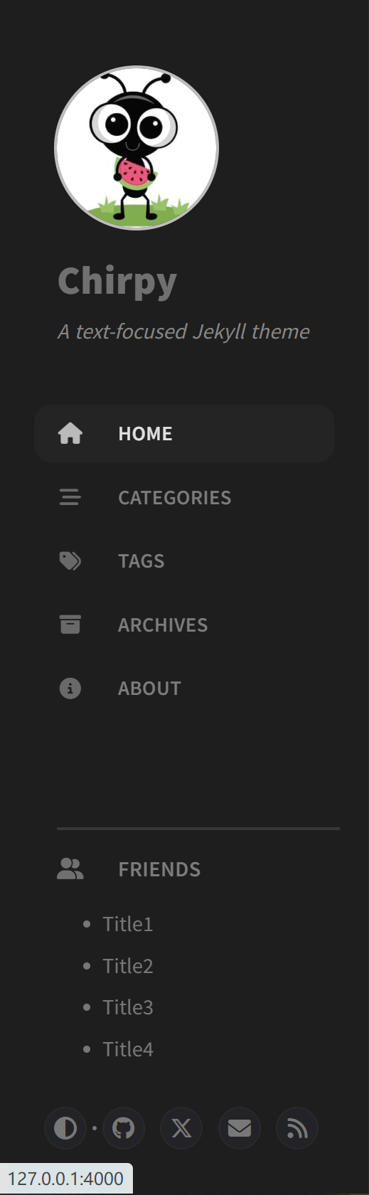 注意生成博客时,放入自己 .github.io 文件夹的样式文件会覆盖原先 gem 包里的同名文件,而未修改的样式文件则照样从 gem 包里读取,所以未修改的样式文件没必要导入,这样也方便后续跟随模板作者进行更新。本篇文章就是记录一些我个人对 Chirpy 进行的部分修改(一些小的修改就不写了)。
