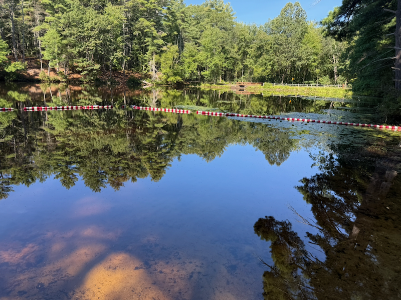 I found the swimming area at Frye Pond, near the park entrance, but swimming was prohibited because of high bacteria count.