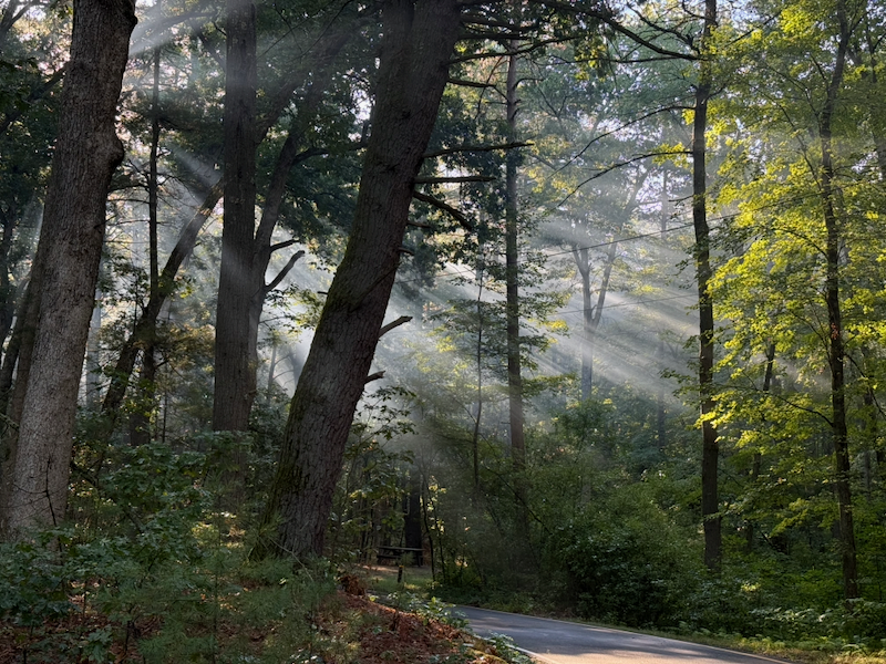 Because of the moisture in the air, I could see drops of water falling from the trees in the sunlight, and there were some spectacular sunbeams.
