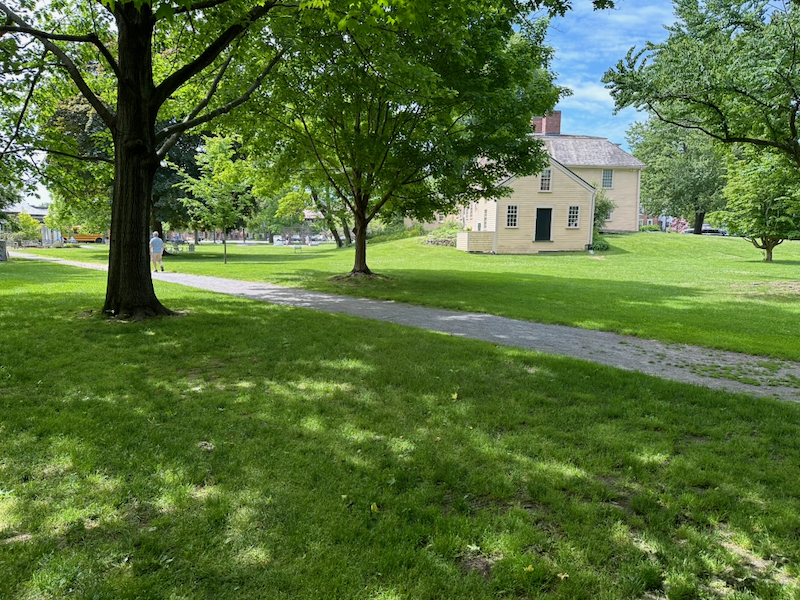 I stopped near Lexington Green for a snack and a drink of water; the temperature was 76 °F.