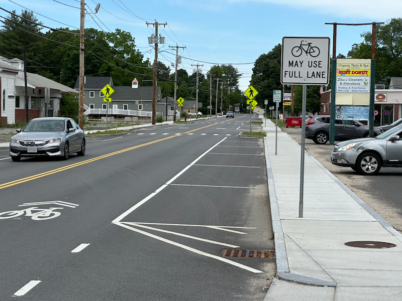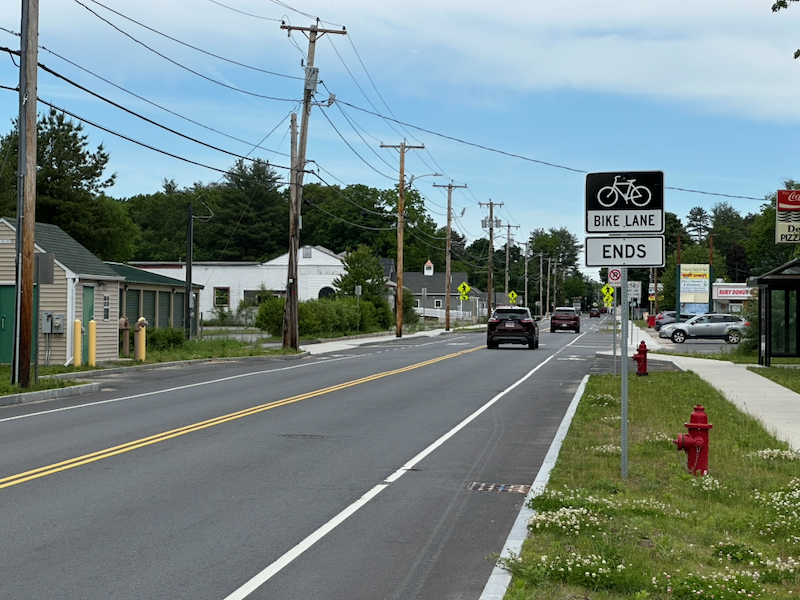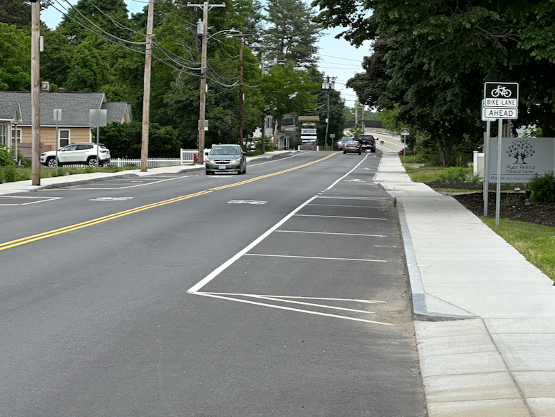 On West Main Street in Devens, I encountered an egregious piece of “cars are more important than bicycles” road infrastructure, where a bicycle lane was interrupted by on street parallel parking that no one was using.