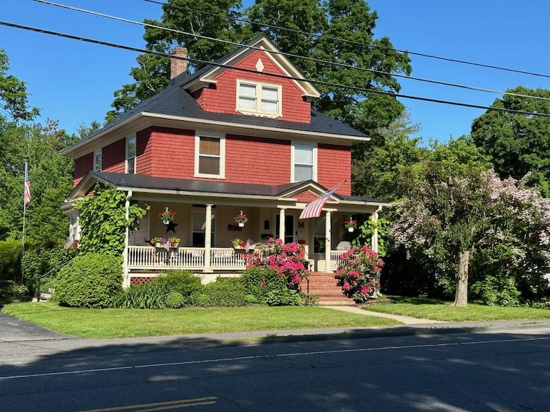 After sleeping some more, in the morning I walked one and a half miles to the Cumberland Farms store in Baldwinville for fruit, snacks, and a sandwich. There are some beautiful old houses along U.S. 202 in Baldwinville.