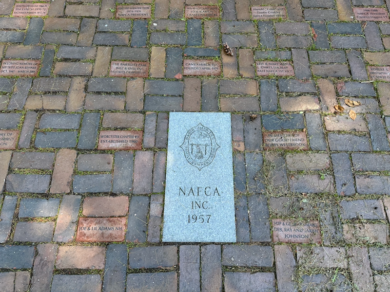 Near Beaman Pond, I found a brick patio commemorating the North American Family Campers Association.