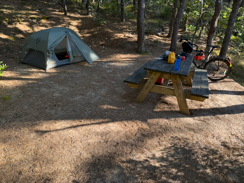 After 6.92 miles of riding (46 minutes), I arrived at the North of Highland Camping Area, where I quickly checked in and found my beautiful and secluded campsite. The weather was sunny and a very comfortable 69 °F.